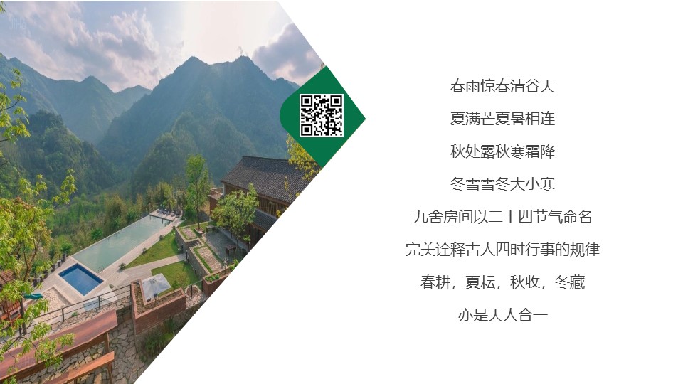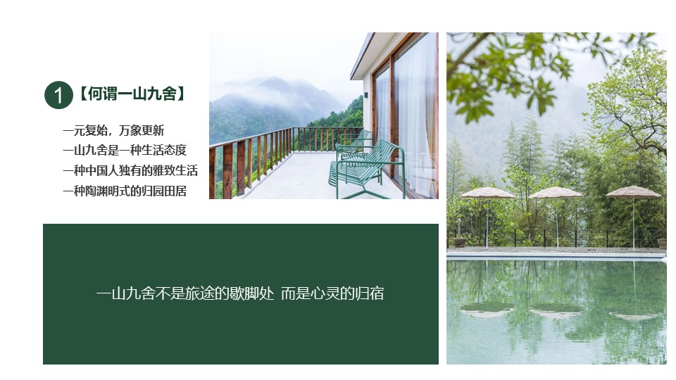 一元復始,萬象更新;一山九舍是一種生活態度;一種中國人獨有的雅致生活;一種陶淵明式的歸園田居。