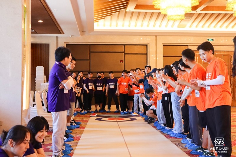 為增進新員工之間的親密感、凝聚力,公司選擇了旱地冰壺、玩霸江湖以及納斯卡巨畫,作為新員工團建拓展活動項目。簡單的暖身破冰小游戲后,新員工們被分為八個小分隊。分隊通過選擇隊長、確立隊名、繪制隊旗、制定口號來完善團隊的組建。通過分組形式,迅速建立溝通環境,初步形成團隊氣氛。