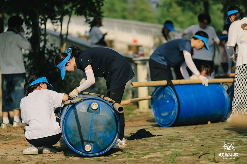 木筏制作環節,在大家精心設計并自制木筏的過程中,