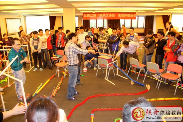 5月10日在穹窿山腳下的五星酒店迎來了延鋒江森98位來自南通、上海的團隊成員共同演繹了一場“挑戰戈德堡”室內大型主題體驗式培訓課程!通過大膽的創意設計理念,通過團隊成員每一個人的積極參與和智慧碰撞,通過特制道具的設計與分工協作, 共同設計出一座戈德堡機械迷城,并在這座迷城中執行一系列的任務,讓團隊的體驗度達到巔峰,感受深刻,回味無窮……