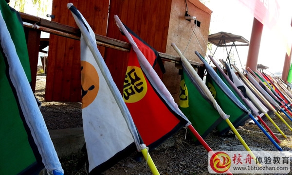 代表團隊精神和團隊正能量的核舟體驗旗幟冉冉升起,在微風中瀟灑舞動……
