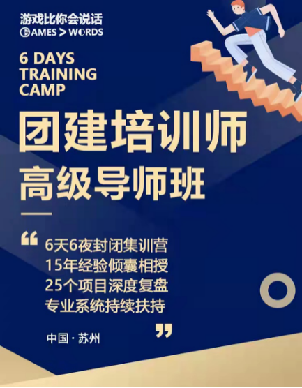 現在,《游戲比你會說話》高級團建拓展培訓師2022年第二期啟動招募,成為行業資深玩家,成為控場王,成為高級企業培訓師,成為高薪人士,或許就差一次報名。